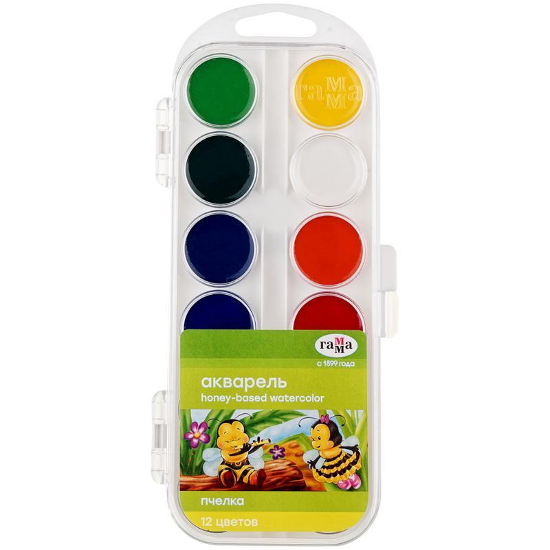 Акварельные медовые полусухие краски Гамма Пчелка, 12 цветов. Краски выпускаются в удобной пластиковой упаковке с прозрачной крышкой, безопасна для детей, не токсична. Кисточка в комплект не входит. Краски быстро высыхают и не портятся со временем. Краски идеально подойдут для детского и художественного изобразительного искусства. Яркие, насыщенные цвета красок отлично смешиваются между собой. Не токсична, легко смывается с рук и одежды. Размер упаковки (ДxШxВ): 200x90x20 мм. Объем краски одного цвета в кювете - 3,5 куб.см.