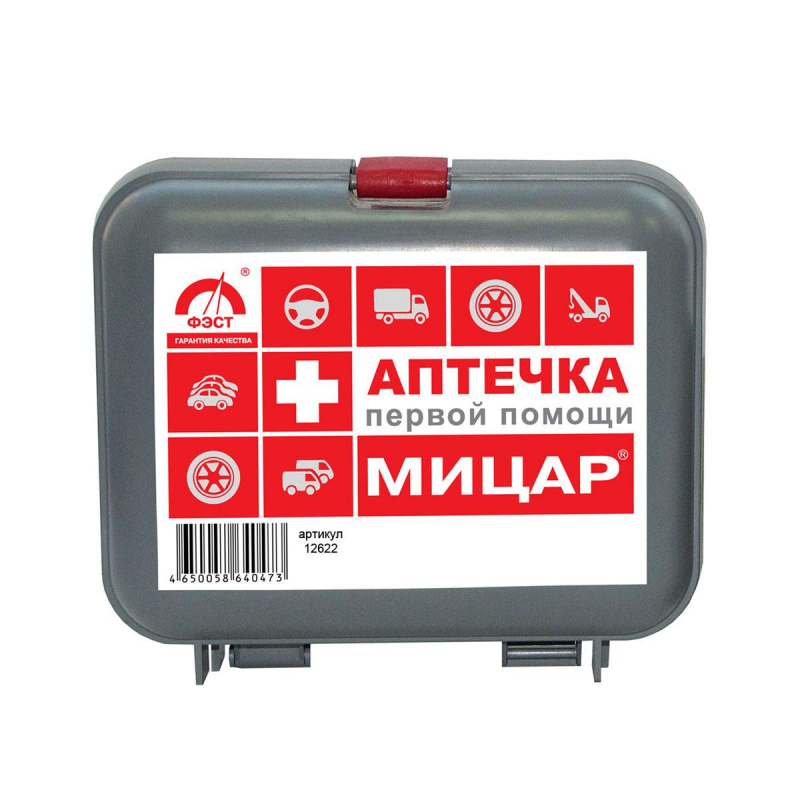 Аптечка дорожная Мицар состав №1. Состав: 1. Жгут кровоостанавливающий: 1 шт. 2. Бинт марлевый медицинский нестерильный 5м х 10 см: 1 шт. 3. Бинт марлевый медицинский стерильный 5м х 5 см: 1 шт. 4. Бинт марлевый медицинский стерильный 5м х 10 см: 1 шт. 5. Устройство УДР: 1 шт.