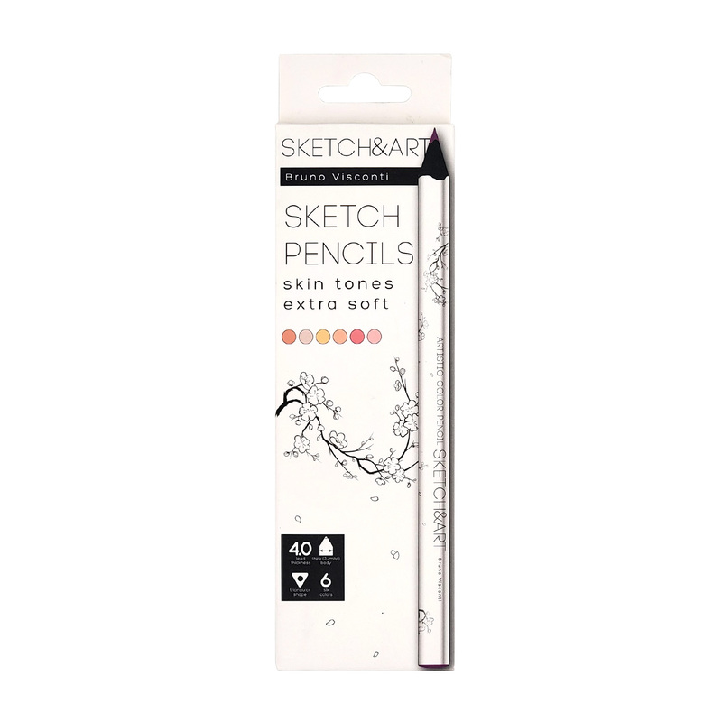 Великолепный набор скетч-карандашей SKETCH&ART. В белой картонной коробке с покрытием SoftTouch собраны 6 цветов для создания реалистичных портретов. Толстый корпус карандаша (диаметром 10 мм). Карандаш удобно держать в руках даже в перчатках, делая наброски осеннего пейзажа или морозного рассвета. Мягкий грифель диаметром 4 мм профессионального уровня высоко оценят опытные художники, а для новичка такое качество станет вдохновляющим началом творческого пути. Карандаш легко скользит по бумаге, не царапая ее поверхность, но при этом позволяет рисовать ярко и насыщенно или делать плавные переходы и градиенты. Скетч-карандаши SKETCH&ART - это уникальный продукт на рынке. Ведь ко всему прочему, они выполнены из черного термообработанного дерева, окрашены в несколько слоев, имеют окрашенный диппинг, а так же авторский принт на корпусе.