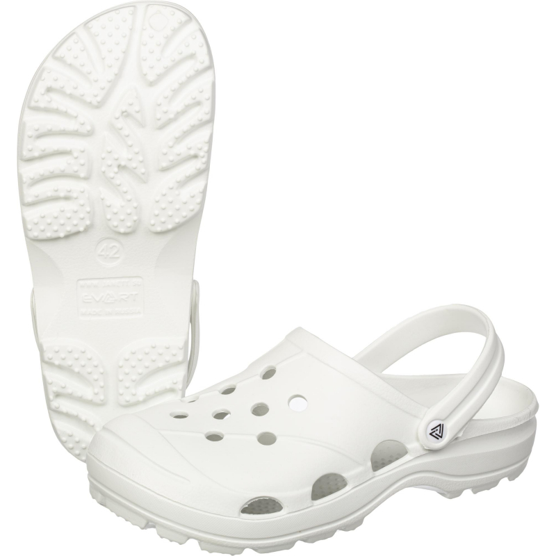 Сабо мужские "Ола" белого цвета. Размер: 42. Белый цвет - бессменная классика. В таких сабо сочетается строгость, простота и стиль. Такая обувь придется по вкусу как взрослым, так и молодежи. Снимают нагрузку с позвоночника при ходьбе за счет повышенной эластичности ЭВА материала. Если Вам приходится целый день находиться на ногах, то эта модель определенно для Вас. Массажная стелька из мягкого материала снижает нагрузку на суставы и помогает Вашим ногам ощутить легкость и надолго забыть про усталость. Широкая носочная часть препятствует деформации пальцев ног. Отверстия по всей союзке создают хорошую циркуляцию воздуха и помогают ноге дышать. Дополнительные характеристики сабо: - легкие; - неприхотливы в уходе; - не впитывают запахи; - гипоаллергенны; - на поверхности не развиваются бактерии и микробы. Данная модель также отлично подойдет для: - сотрудников предприятий общественного питания; - медицинских работников; - работников пищевой промышленности, производств легкой промышленности и др. Большемерит на 1 размер. Минимальная рекомендованная температура эксплуатации, позволяющая сохранить свойства материала, из которого изготовлена обувь - до -10 °C.