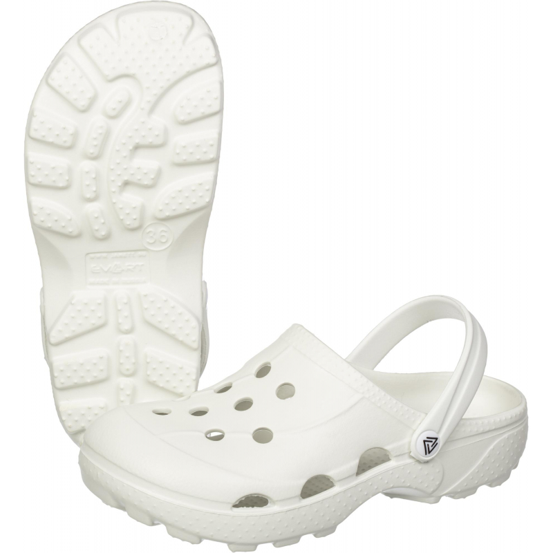 Сабо женские "Ола" белого цвета. Размер: 41. Снимают нагрузку с позвоночника при ходьбе за счет повышенной эластичности ЭВА материала. Если Вам приходится целый день находиться на ногах, то эта модель определенно для Вас. Массажная стелька из мягкого материала снижает нагрузку на суставы и помогает Вашим ногам ощутить легкость и надолго забыть про усталость. Широкая носочная часть препятствует деформации пальцев ног. Отверстия по всей союзке создают хорошую циркуляцию воздуха и помогают ноге дышать. Дополнительные характеристики сабо: - легкие; - неприхотливы в уходе; - не впитывают запахи; - гипоаллергенны; - на поверхности не развиваются бактерии и микробы. Большемерит на 1 размер. Минимальная рекомендованная температура эксплуатации, позволяющая сохранить свойства материала, из которого изготовлена обувь - до -10 °C.