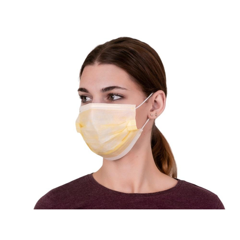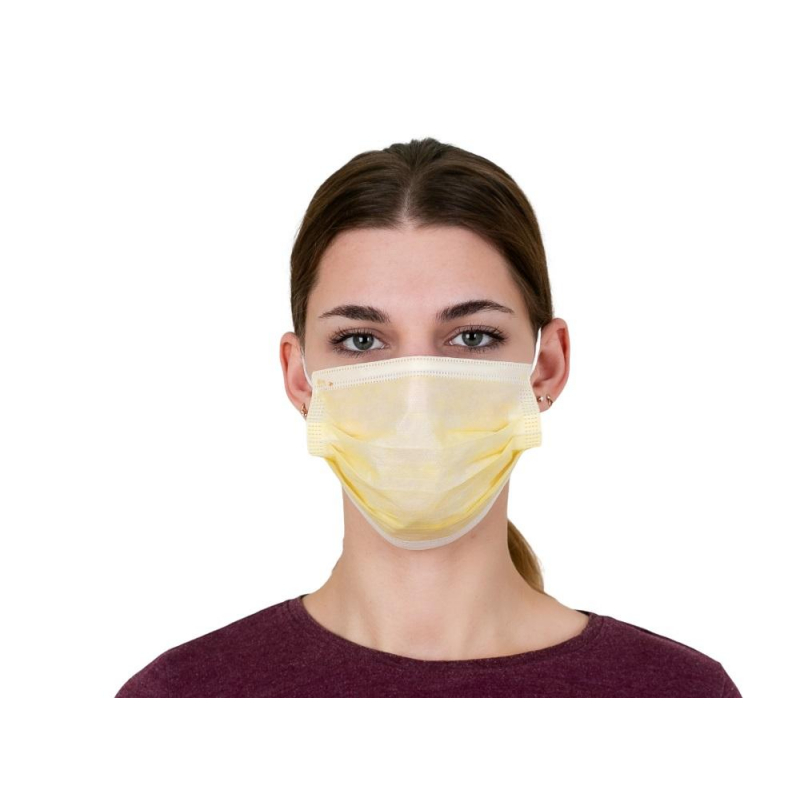 Маска медицинская 3х-слойная, одноразовая, желтый, 50 шт/уп