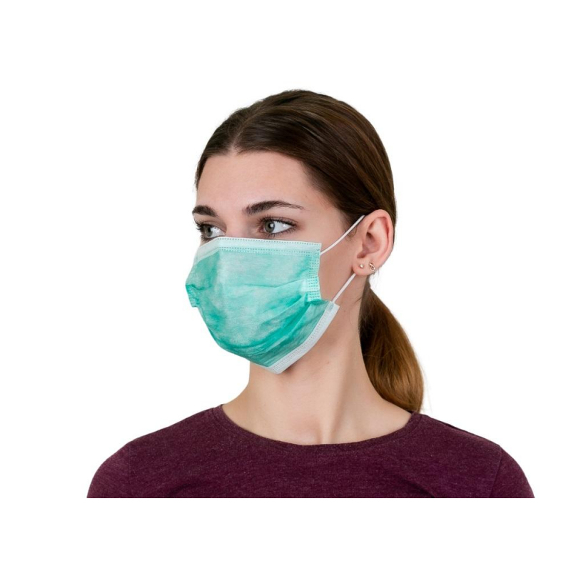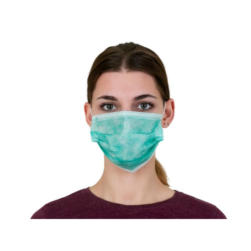 Маска медицинская 3х-слойная, одноразовая, зеленый, 50 шт/уп