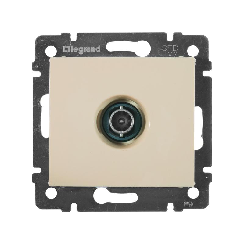Розетка Legrand Valena 695617 телевизионная, слоновая кость. Розетка телевизионная оконечная предназначена для подсоединения телевизионного кабеля в шлейфе, состоящем из нескольких проходных розеток. Данная розетка является замыкающей. Поверхность выполнена из термопласта, ударопрочного, не ломающегося стойкого к ультрафиолетовому излучению. Металлический механизм обеспечивает безопасность применения. Поставляется в сборе (механизм и накладка) необходимо добавить только рамку. Тип коннектора - под штекер IEC, диаметр 9,52 мм.