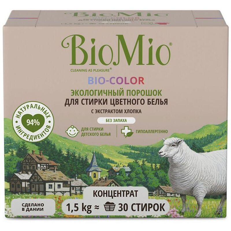 Порошок стиральный автомат BioMio Bio Color 1.5 кг (для цветного белья). Назначение: экологичный стиральный порошок Bio-color для цветного белья с экстрактом хлопка эффективно удаляет пятна и загрязнения, не повреждая волокна ткани. Он полностью выполаскивается, исключая попадание на кожу, благодаря чему подходит для детского белья и одежды людей с чувствительной кожей. Концентрированная формула обеспечивает экономичный расход. Не содержит фосфаты, агрессивные ПАВ, SLES, хлор, ЭДТА, нефтехимические красители, искусственные ароматизаторы. Безопасно для планеты. Имеет экологический сертификат "Листок жизни". BioMio - линейка эффективных средств для дома, использование которых приносит удовольствие. Продукты, созданные с любовью и заботой, идеально справятся с загрязнениями, оставаясь при этом абсолютно безопасными, экологичными и особенно незаменимыми, если в доме есть малыш. Способ применения: соответствующее количество порошка добавьте в выдвижной отсек стиральной машины или полностью растворите в воде при ручной стирке. Соблюдайте режим стирки, указанный на ярлыке одежды, дозировку и температуру. Не насыпайте порошок непосредственно на белье во избежание изменения цвета ткани. При первой стирке цветного белья протестируйте средство на незаметном участке одежды. Мы рекомендуем стирать при низких температурах, полной загрузке машины и не использовать больше средства, чем рекомендовано. В этом случае расход энергии, воды и ее загрязнение являются минимальными. Меры предосторожности: беречь от детей! Избегать попадания в глаза. При попадании в глаза - немедленно промыть проточной водой. Не глотать. При проглатывании обратитесь за медицинской помощью. Хранить вдали от пищевых продуктов. При повышенной чувствительности и повреждениях кожи избегать длительного контакта с любыми средствами для стирки. Состав: 5-15% цеолиты, неионогенные ПАВ; 5% анионные ПАВ, мыло, энзимы, экстракт хлопка. Условия хранения: предохранять от воздействия прямых солнечных лучей и нагревания. Хранить при относительной влажности воздуха не более 95%. Срок годности: 36 месяцев.