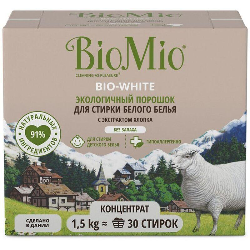 Порошок стиральный автомат BioMio Bio White 1.5 кг (для белого белья). Назначение: экологичный стиральный порошок Bio-white для белого белья с экстрактом хлопка эффективно удаляет пятна и загрязнения, не повреждая волокна ткани. Он полностью выполаскивается, исключая попадание на кожу, благодаря чему подходит для детского белья и одежды людей с чувствительной кожей. Стиральный порошок не содержит вредных светоотражающих частиц, которые создают иллюзию чистоты и белизны. Концентрированная формула обеспечивает экономичный расход. Не содержит фосфаты, агрессивные ПАВ, SLES, хлор, ЭДТА, нефтехимические красители, искусственные ароматизаторы. Безопасно для планеты. Имеет экологический сертификат "Листок жизни". BioMio - линейка эффективных средств для дома, использование которых приносит удовольствие. Продукты, созданные с любовью и заботой, идеально справятся с загрязнениями, оставаясь при этом абсолютно безопасными, экологичными и особенно незаменимыми, если в доме есть малыш. Способ применения: соответствующее количество порошка добавьте в выдвижной отсек стиральной машины или полностью растворите в воде при ручной стирке. Соблюдайте режим стирки, указанный на ярлыке одежды, дозировку и температуру. Не насыпайте порошок непосредственно на белье во избежание изменения цвета ткани. При первой стирке цветного белья протестируйте средство на незаметном участке одежды. Мы рекомендуем стирать при низких температурах, полной загрузке машины и не использовать больше средства, чем рекомендовано. В этом случае расход энергии, воды и ее загрязнение являются минимальными. Меры предосторожности: беречь от детей! Избегать попадания в глаза. При попадании в глаза - немедленно промыть проточной водой. Не глотать. При проглатывании обратитесь за медицинской помощью. Хранить вдали от пищевых продуктов. При повышенной чувствительности и повреждениях кожи избегать длительного контакта с любыми средствами для стирки. Состав: 5-15% кислородный отбеливатель, цеолиты, неионогенные ПАВ; 5% анионные ПАВ, мыло, энзимы, экстракт хлопка. Условия хранения: предохранять от воздействия прямых солнечных лучей и нагревания. Хранить при относительной влажности воздуха не более 95%. Срок годности: 36 месяцев.