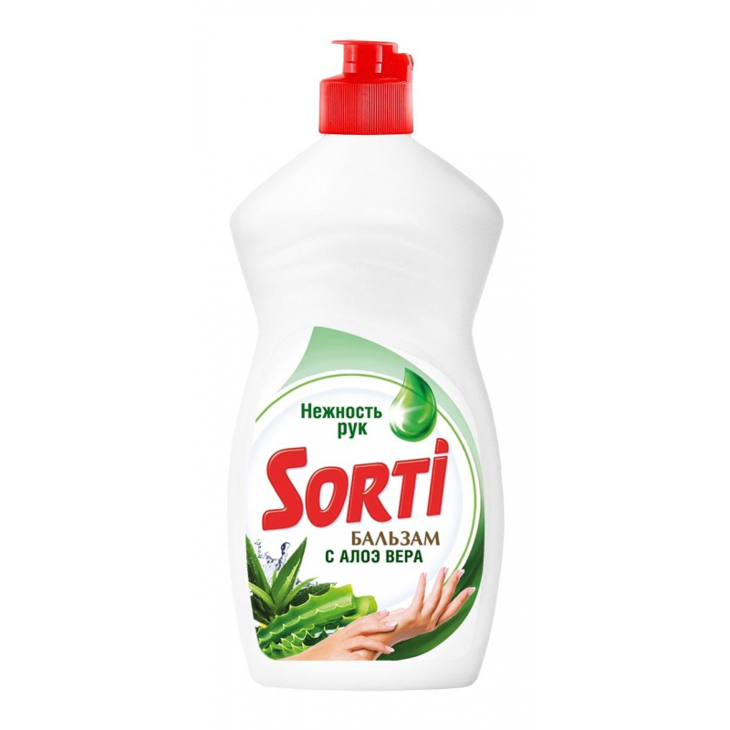 Средство для мытья посуды Sorti бальзам с алоэ вера Е 450 мл. Назначение: современное, высокофункциональное средство с легкостью отмывает даже самые сложные загрязнения и глубоко въевшийся жир. Комплекс активных компонентов помогает справляться с различными загрязнениями даже в холодной воде. Натуральный экстракт Алоэ Вера смягчает и увлажняет Вашу кожу. Отлично пенится и легко смывается водой. Способ применения: для мыть посуды непосредственно под струей воды нанесите 1-2 капли средства на влажную губку, протрите посуду и ополосните ее под струей воды или растворите 1 чайную ложку средства в 5 л воды, вымойте посуду, ополосните водой. При повышенной жесткости воды дозу средства увеличить. Меры предосторожности: беречь от детей. При попадании на слизистую оболочку или глаза промыть их проточной водой. Состав: 5% или более, но менее 15%: анионные ПАВ; менее 5%: неионогенные ПАВ, ароматизирующая добавка (в т.ч. гексилциннамаль), экстракт алоэ вера, регулятор рН, соль этилендиаминтетрауксусной кислоты, консервант, красители. Условия хранения: хранить при температуре от -10 °С до +25 °С, в сухом помещении. Избегать попадания прямых солнечных лучей и не хранить в близи отопительных приборов. Средство замерзает, после размораживания сохраняет свои свойства. Срок годности: 24 месяца.