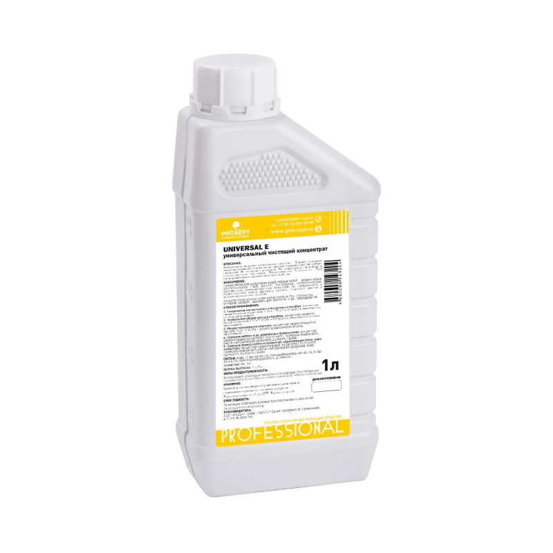 Универсальное чистящее средство Universal E концентрат 1 л. Назначение: моющее низкопенное средство. Удаляет основные виды загрязнений со всех типов твердых поверхностей. Хорошо растворяется в воде любой жесткости и температуры. Обладает обезжиривающим действием. Не оставляет пленок и разводов. Не требует смывания. Применяется для мойки полов и стен, столешниц и др. оборудования в помещениях организаций общественного питания (кафе, баров, ресторанов, столовых), торговых и деловых центров, медицинских, образовательных и иных учреждений, спортивно-оздоровительных и культурно-досуговых сооружений, предприятий промышленности, гостиниц и вокзалов, на всех видах транспорта и в быту Способ применения: ежедневная уборка: 2-3%. Генеральная уборка: 5-10%. Меры предосторожности: использовать резиновые перчатки и спецодежду. Избегать попадания в глаза. В случае попадания - обильно промыть водой. При необходимости обратиться к врачу. Состав: вода, НПАВ