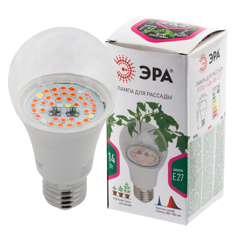 Фитолампа красно-синего спектра лампа ЭРА Fito-14W-RB-E27 стала еще эффективнее, светоотдача светодиодов увеличилась за счет снижения температуры кристалла. Долговечность микросхем драйвера также увеличилась за счет снижения температуры на чипе. Поликарбонатный прозрачный рассеиватель позволит сохранить выдаваемый светодиодами световой поток на все 94%. Отличная лампа для выращивания рассады, пасленовых, подсветки декоративных цветов будет вас долго радовать. Расстояние от лампы до листьев должно быть в пределах от 10 до 25 см. В этом случае лампа будет работать максимально эффективно. Так как масса выращиваемых растений прямо пропорциональна затраченной мощности, необходимо понимать, что усиление эффекта от лампы возможно при увеличении светового потока. Внешний вид и/или характеристики товара могут быть изменены производителем в соответствии с производственным процессом.
