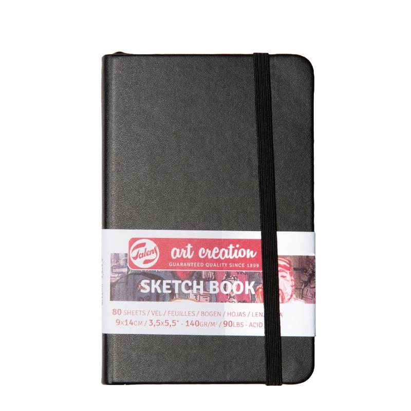 Блокнот для зарисовок Royal Talens Art Creation 9x14 см твердая обложка черный. Блокноты Talens Art Creation идеально подойдут для графических зарисовок карандашом, пастелью, углем, ручкой, а также для записей и заметок. Благодаря высококачественной бумаге, гелевые и масляные чернила не просачиваются, а твердая обложка защищает листы от смятия. Плотность бумаги: 140 г/м2. Количество листов: 80.