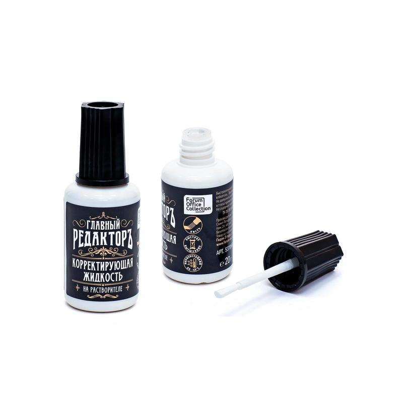Корректирующая жидкость на быстросохнущей основе 20 мл. применяется для корректировки всех видов чернил, рукописных и печатных текстов. Полностью закрашивает текст. Ложится ровным гладким слоем, создает непрозрачное покрытие. Во флаконе есть металлический шарик (перед использованием рекомендуется встряхивать). Вид кисточки - ворс. Морозоустойчивая.
