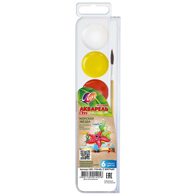 Краски акварельные Луч ZOO 6 цветов с/кистью, 29С 1724-08