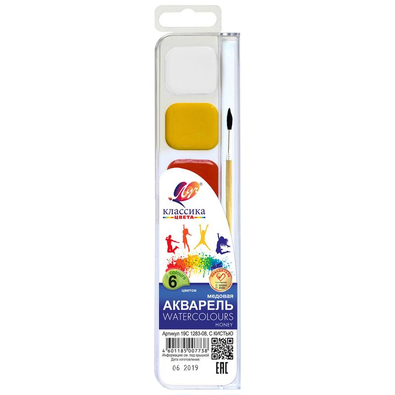 Высококачественная краска для детского творчества с яркими и чистыми цветами, изготовленная по классической рецептуре с использованием меда. Прекрасно размывается и разносится по поверхности бумаги. Краски смешиваются между собой, сохраняя насыщенность цвета. Краска легко смывается с рук и одежды. В наборе присутствует белый цвет. Вид акварели - полусухая. Упаковка - пластиковое донышко с прозрачной крышкой, материал - полистирол, с европодвесом. Размер 205х46x13 мм. С кистью.