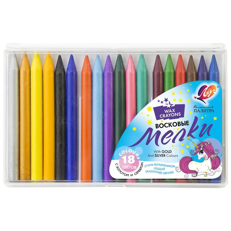 Мелки изготавливаются на основе восков и высококачественных пигментов. Предназначены для рисования и письма по разным поверхностям: бумаге, картону, дереву, ткани, стеклу, камням. Яркие насыщенные цвета с мелками золотистого и серебряного цвета. Прочные, экономичные, не требуют затачивания, но при необходимости можно использовать обычную точилку. Прекрасно рисуют в различных техниках в сочетании с акварелью и гуашью. Удобная пластиковая упаковка для хранения мелков.