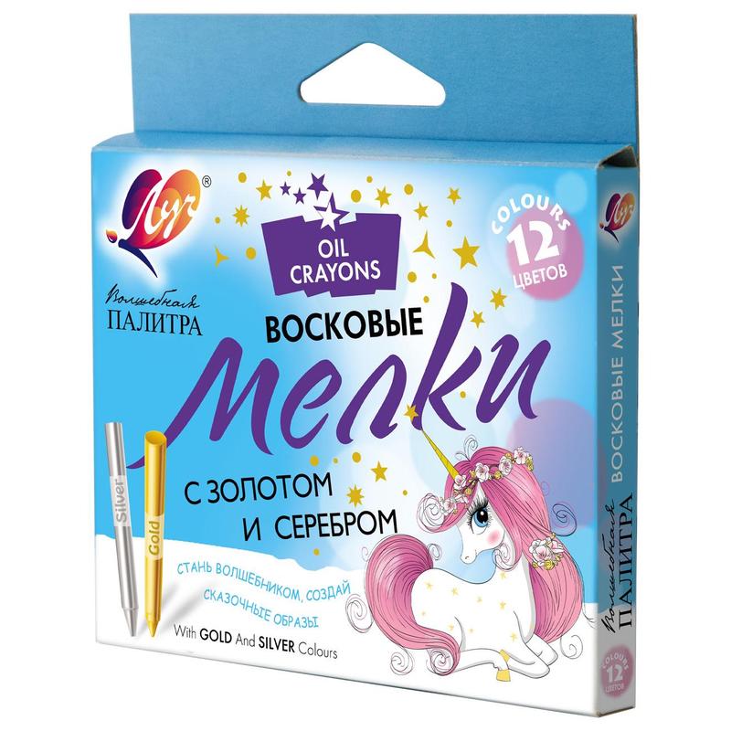 Мелки изготавливаются на основе восков и высококачественных пигментов. Предназначены для рисования и письма по разным поверхностям: бумаге, картону, дереву, ткани, стеклу, камням. Яркие насыщенные цвета с мелками золотистого и серебряного цвета. Прочные, экономичные, не требуют затачивания, но при необходимости можно использовать обычную точилку. Прекрасно рисуют в различных техниках в сочетании с акварелью и гуашью. Удобная пластиковая упаковка для хранения мелков.