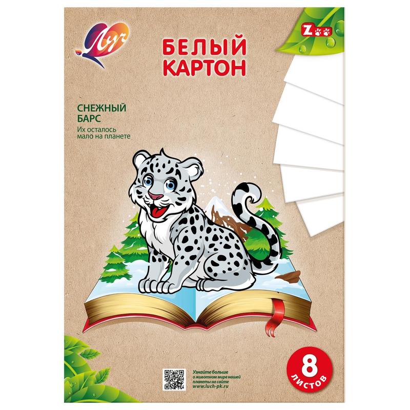 8 листов одностороннего белого картона из качественного мелованного картона плотностью 220 г/кв.м упакованы в папке из высококачественного импортного макулатурного картона плотностью 230 г/кв.м. Честный размер А4 формата - 210х297мм. Используется для детского творчества в аппликации и рисовании. Транспортная упаковка - гофрокороб.