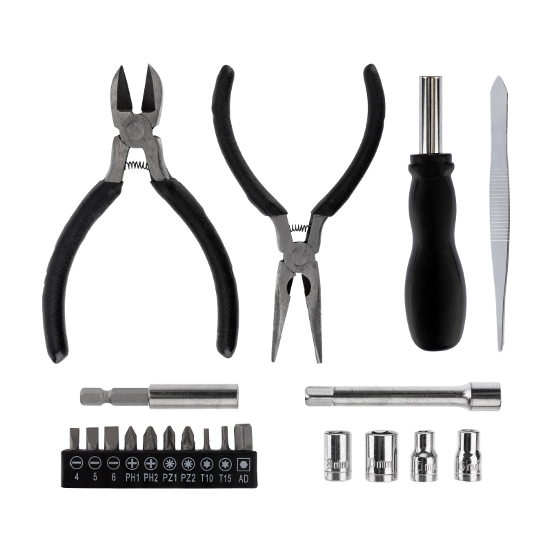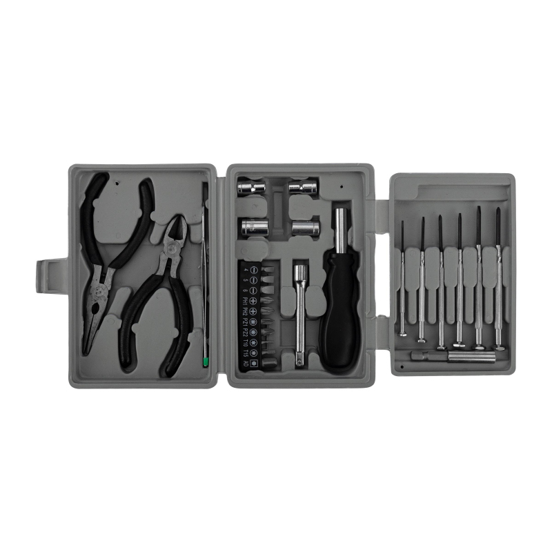 Набор инструмента универсальный Rexant Hobby 26 предметов (12-6071) набор инструмента универсальный Rexant Hobby 26 предметов (12-6071). Набор инструмента предназначен для выполнения различных механических работ (монтаж электроаппаратуры, сборка и ремонт часов и т. п.). В набор входят: Бокорезы мини, имеют возвратную пружину; Тонкогубцы мини, имеют возвратную пружину; Пинцет мини; Отвертка; Удлинитель для бит; Удлинитель для торцевых головок; Биты: T10, T15, T20, переходник для торцевых головок, PH1, PH2, PH3, SL4, SL5, SL6; Торцевые головки: 5 мм. 6 мм. 8 мм. 10 мм.; Часовые отвертки: PH0, PH1, SL1, SL1. 4, SL1. 8, SL2. Набор поставляется в пластиковом кейсе.Внешний вид и/или характеристики товара могут быть изменены производителем в соответствии с производственным процессом.
