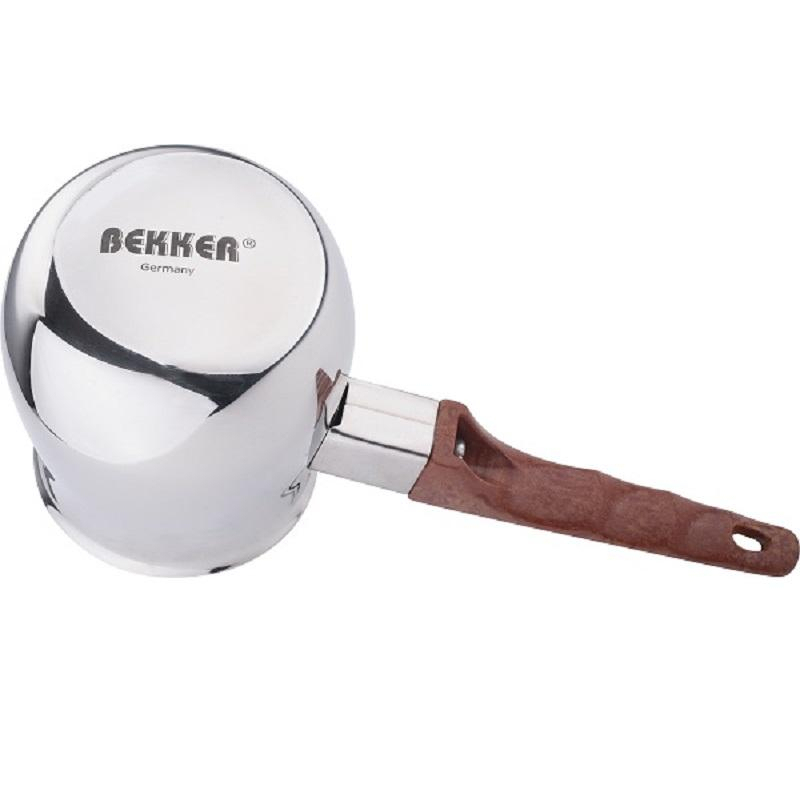 Турка Bekker 720 мл (BK-8211). Объем: 720 мл. Толщина стенки: 0,8 мм. Поверхность внутри матовая, снаружи зеркальная. Ручка бакелитовая, цветная. Подходит для использования на всех видах плит. Подходит для мытья в посудомоечной машине. Состав: нержавеющая сталь.