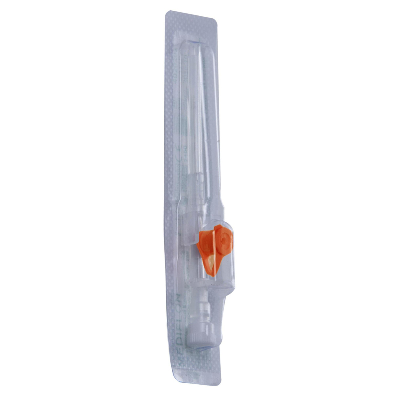 Катетер внутривенный с дополнительным портом и крыльями для периферических вен, предназначен для длительных внутривенных вливаний. Наружный диаметр катетера должен быть не более 2,1 мм, длина не менее 45 мм. Скорость потока не менее 305 мл/минуту. Цветовой код для быстрого определения размера, цвет - оранжевый. Пункционная игла должна быть изготовлена из высококачественной хирургической стали, чтобы сохранить прочность при минимальной толщине стенки. Заточка иглы тройная для обеспечения атравматичного введения. Встроенный упорный держатель, который должен позволять легко производить манипуляцию. Поверхность катетера должна быть гладкая, эластичная, кончик катетера должен плотно прилегать к пункционной игле для безболезненного введения катетера в вену; должны быть не менее двух встроенных рентгенконтрастных полос для контроля местоположения катетера. Соединяющиеся фиксирующие крылышки должны иметь слегка шероховатую поверхность для удобства введения и фиксации на коже пациента. Цветовая кодировка заглушки дополнительного порта для облегчения визуального определения размера катетера. Гидрофобная заглушка для предупреждения подтекания крови и съемная заглушка - для быстрого закрытия катетера. Используемые материалы: PTEF (политетрафторэтилен)/FEP (фторированный этилен-пропилен)/PU FLEX (полиуретановое покрытие), Polypropylene (полипропилен), РОМ (полиоксиметилен). Все изделие должно быть изготовлено из материалов с высокой степенью биотолерантности, стерилизовано окисью этилена, апирогенно, нетоксично, в отдельной упаковке.