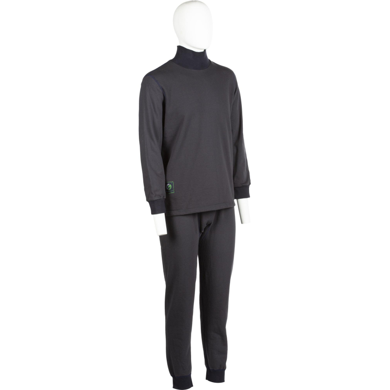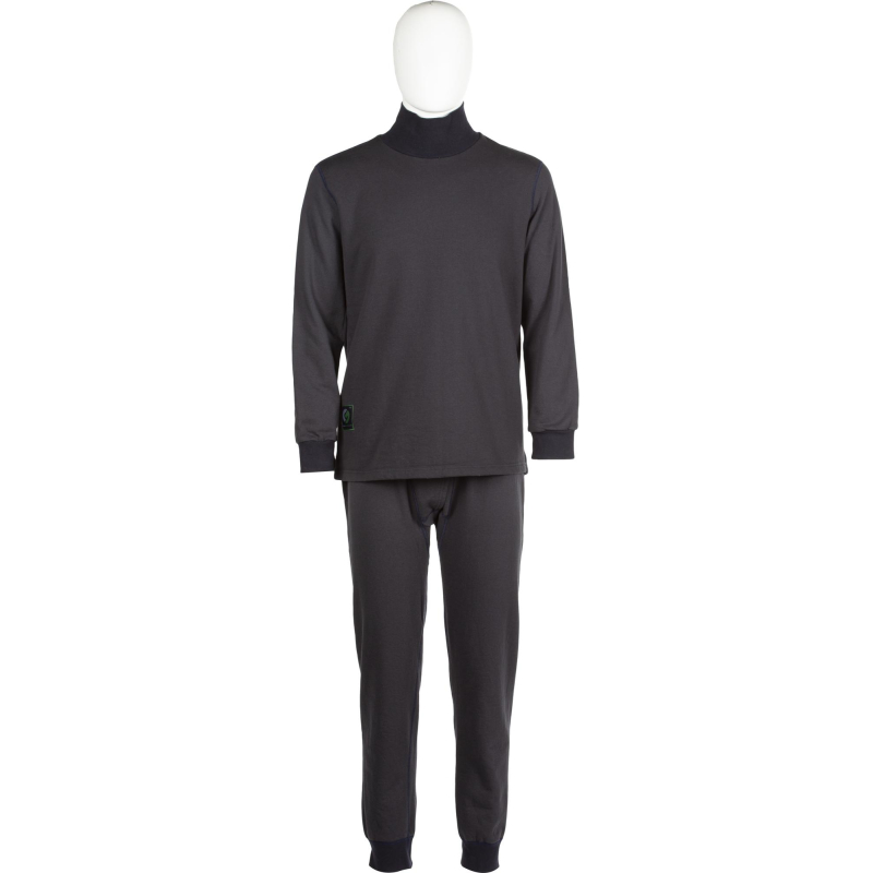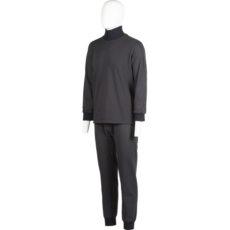Белье нательное термостойкое мужское. Размер: 52-54. Рост: 182-188. Состав ткани: 88% хлопок, 12% нейлон. Плотность ткани: 370 г/кв.м. Уровень защиты: 17 кал/кв.см. Комплект белья состоит из фуфайки с длинным рукавом и кальсон. Горловина ворота обработана трикотажной бейкой. Рукава фуфайки и низ кальсон имеют трикотажные манжеты. ТР ТС 019/2011, ГОСТ Р 12.4.234-2012, ГОСТ Р ИСО 11612-2007.