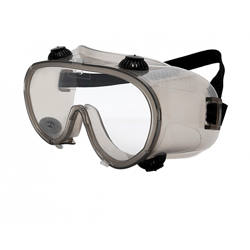 Очки защитные закрытые с непрямой вентиляцией предназначены для защиты глаз от прямого попадания пыли в подочечное пространство, обеспечивают защиту от стружки и брызг не разъедающих жидкостей. Линзы из ударопрочного поликарбоната эффективно защищают от брызг расплавленного металла. Наголовная резинка позволяет регулировать размер под любую форму головы. Рекомендуется применять при проведении работ связанных с риском получения травм глаз (на станках и устройствах для механической обработки твердых материалов, при слесарных работах). Благодаря встроенным клапанам, данная модель закрытых очков позволяет работать в условиях повышенной запыленности. Для изготовления оправы для данных очков использовался материал ПВХ. Материал оправы: ПВХ. Материал линз: поликарбонат. Цвет линз: прозрачный. Защита от УФ излучения: да. Защита от царапин: нет. Защита от запотевания: нет. Защита от кислот и щелочей: нет. Регулировка дужек: нет. Использование с корригирующими очками. Без покрытия. Вес: 65 г. Применение: защита спереди и сбоку, сверху и снизу от брызг неразъедающих жидкостей и от сочетания их с воздействием твердых частиц.