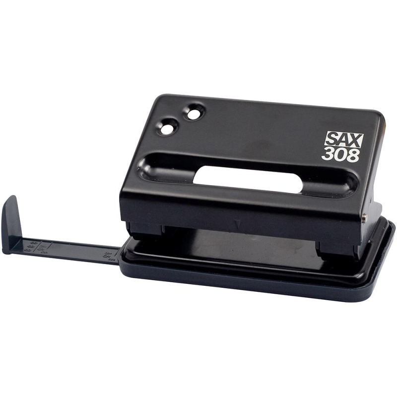 Дырокол Sax 308 с металлическим механизмом и корпусом из легкосплавного металла черного цвета с линейкой и контейнером для конфетти. Одновременно пробивает до 15 листов. Расстояние между отверстиями: 80 мм, диаметр отверстий: 5.5 мм. Срок гарантии: 10 лет.