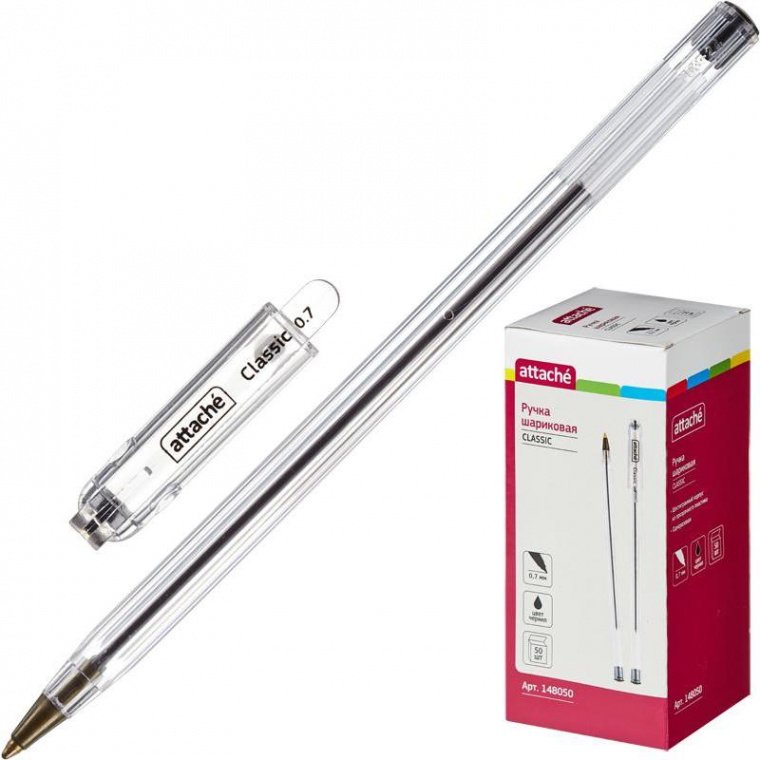 Ручка шариковая Attache Сlassic.Прозрачный многогранный пластиковый корпус, вентилируемый колпачок. Цвет чернил — соответствует цвету заглушки. Толщина линии — письма — 0,7 мм. Диаметр шарика — 1 мм.