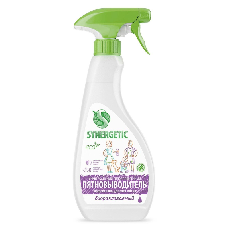 Пятновыводитель Synergetic для предварительной обработки пятен спрей 500 мл. Назначение: Биоразлагаемый гипоаллергенный универсальный пятновыводитель Synergetic - универсальное средство для эффективного удаления загрязнений и трудновыводимых пятен от масла, жира, какао, ягод, травы, чернил, кофе, вина, крови на белом и цветном белье из натуральных и синтетических тканей. Удобный флакон с распылителем идеально подходит для предварительной обработки пятен. Гипоаллергенный пятновыводитель подходит для детского белья. Полностью выполаскивается из волокон ткани и не остается на одежде. Не содержит красители, ароматизаторы, фосфаты, фосфонаты, акрилаты, агрессивные ПАВ, ЭДТА, оптические отбеливатели. Комбинация пяти видов энзимов (протеаза, амилаза, целлюлаза, липаза, маннаназа) и растительных ПАВ эффективно удаляет загрязнения и застарелые пятна с волокон ткани. Пятновыводитель Synergetic не вредит микрофлоре септических установок и биоразлагается в условиях естественной среды. Способ применения: равномерно нанесите пятновыводитель на пятно и оставьте на 5-10 минут, затем постирайте в обычном режиме. ВНИМАНИЕ! Следуйте рекомендациям, указанным на ярлыке изделия. Перед применением проверьте устойчивость окраски ткани, используя средство на незаметном участке, прополощите и дайте высохнуть. Остаточные пятна на текстиле от бета-каротина, содержащегося в моркови, перце, вишне, абрикосе и др., исчезают сами по себе под действием ультрафиолетового излучения солнечного света. Меры предосторожности: беречь от детей. Избегать попадания на слизистые оболочки и кожу. При попадании на кожу немедленно промыть большим количеством воды. При проглатывании незамедлительно обратиться к врачу, показав флакон и этикетку. Состав: вода подготовленная > 30%; комплекс Н-тензидов (ПАВ из растительного масла): этоксилированные жирные спирты из пальмоядрового масла 5-15%, растительный глицерин 5-15%; комплекс А-тензидов (ПАВ из растительного масла) < 5%; изопропиловый спирт < 5%; комплекс Амф-тензидов (ПАВ из растительного масла) < 5%; комплекс зеленых хелатов < 5%; растительные энзимы без ГМО (смесь протеазы, амилазы, целлюлазы, липазы, маннаназы) < 5%; антиресорбент - карбоксиметилинулин < 5%; карбоксиметилцеллюлоза < 5%. Условия хранения: хра##ить при температуре не выше 45 °C; средство замерзает, после размораживания и перемешивания сохраняет свои свойства. Срок годности: 24 месяца с даты изготовления.