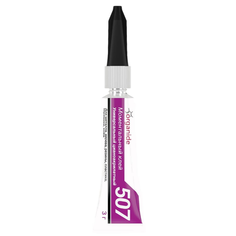 Клей универсальный Organide 507 3 г. Однокомпонентный моментальный клей для быстрого склеивания распространенных в быту материалов. Клеевое соединение устойчиво к органическим растворителям. Прочный клеевой шов. Срок годности 2 года.