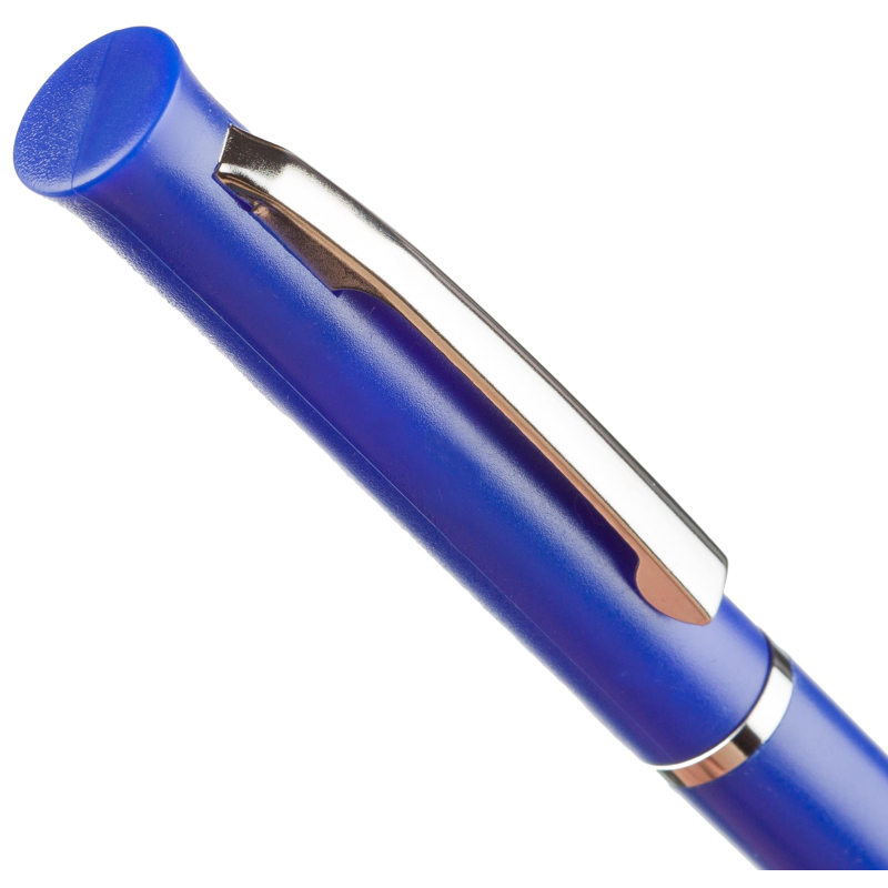 Автоматическая шариковая ручка - идеально подойдет для работы и учебы. Модель выполнена в синем пластиковом корпусе. Стильный дизайн ручки дополняет клип серебристого цвета, позволяющий плотно закрепить ручку в кармане пиджака или тетради для записей. Корпус подходит для логонанесения. Стержень заправлен чернилами синего цвета, обеспечивает легкое и мягкое письмо, яркие и насыщенные линии. Диаметр пишущего узла 1 мм создает тонкую линию письма, равную 0,7 мм.