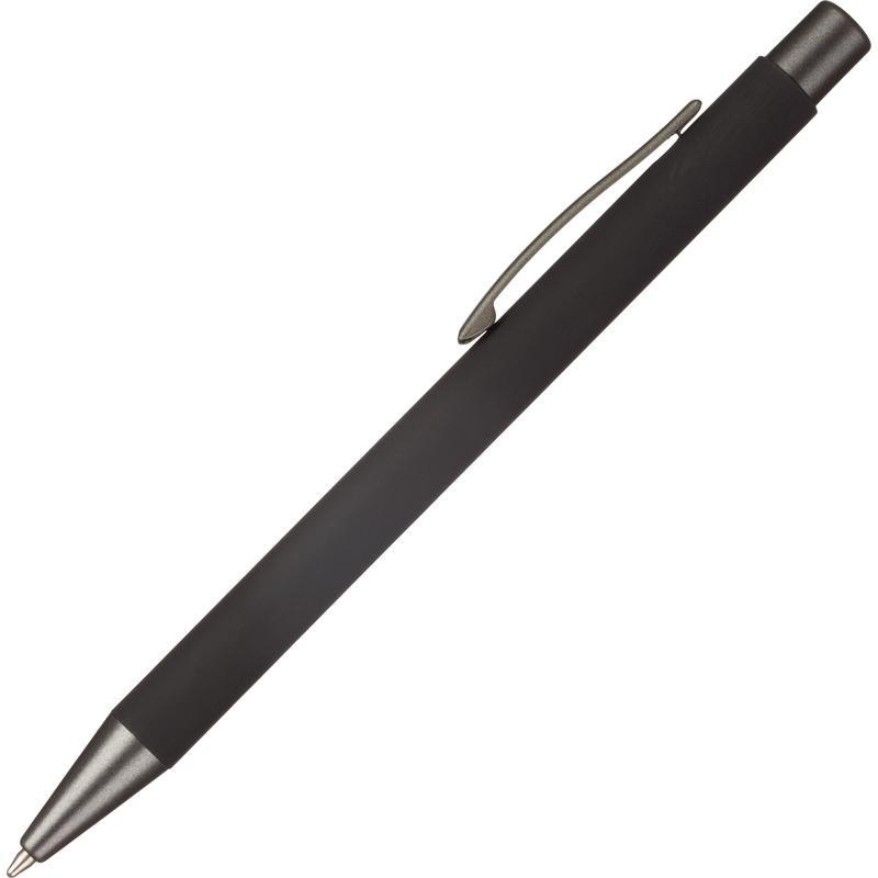Автоматическая шариковая ручка - идеально подойдет для работы и учебы. Модель выполнена в алюминиевом корпусе черного цвета с покрытием soft touch. Стильный дизайн ручки дополняет клип темно-серого цвета, позволяющий плотно закрепить ручку в кармане пиджака или тетради для записей. Корпус подходит для логонанесения. Стержень заправлен чернилами синего цвета, обеспечивает легкое и мягкое письмо, яркие и насыщенные линии. Диаметр пишущего узла 1 мм создает тонкую линию письма, равную 0,7 мм.