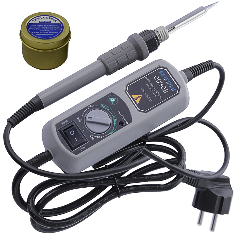 Набор паяльный Мегеон 00308Мегеон 00308 - это набор с самыми необходимым для проведения пайки радиотехнических компонентов и проведения несложного ремонта. Набор укомплектован надежным паяльником с аналоговым регулятором температуры. Одним немаловажным преимуществом является его малый вес, удобная рукоятка и мягкий соединительный провод. Удобный регулятор для установки температуры с высокой точностью выставит необходимую температуру керамического нагревательного элемента мощностью 65 Вт. Паяльник оснащен сменным наконечником типоразмера 900 М-Т. Канифоль поставляется в удобной металлической баночке с крышкой. Также в наборе предусмотрено наличие очистителя жал. Рабочие органы изготовлены из качественных современных материалов. Прибор не требует особых условий эксплуатации и будет по достоинству оценен профессионалами и любителями.Особенности:Индикатор питанияУдобный регулятор для установки температурыПодставка с баночкой для канифоли и очистителя с губкойКомплект поставки:1. Паяльник Мегеон 00308- 1шт.2. Баночка с канифолью и очистителем наконечника- 1шт.3. Наконечник- 1шт.4. Подставка- 1шт.5. Руководство по эксплуатации- 1 экз.6. Гарантийный талон- 1 экз.Внешний вид и/или характеристики товара могут быть изменены производителем в соответствии с производственным процессом.