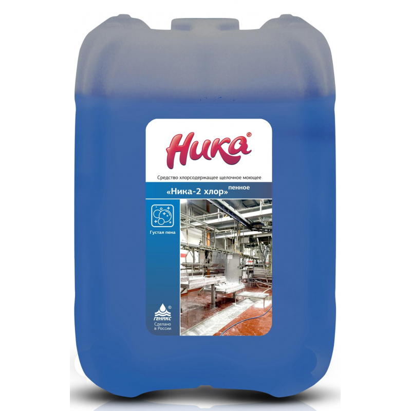 Моющее средство для санитарной мойки с дезинфицирующим эффектом Ника-2 Хлор 6 кг (концентрат). Назначение: для санитарной мойки технологического оборудования, емкостей, трубопроводов, транспортерных лент, блоков розлива, тары в т.ч. оборотной, инструментов, а также полов, стен производственных помещений, очистки и обеззараживания сантехнического оборудования. Способ применения: используются рабочие растворы средства в концентрации 0,5-5,0 % в зависимости от объектов обработки согласно инструкции. При обработке объектов с трудноудаляемыми загрязнениями концентрацию рабочего раствора необходимо увеличить. Состав: калия гидроксид менее 10 %, гипохлорит натрия более 10 %, ПАВ, метасиликат натрия, вода питьевая. Срок годности: 12 месяцев.
