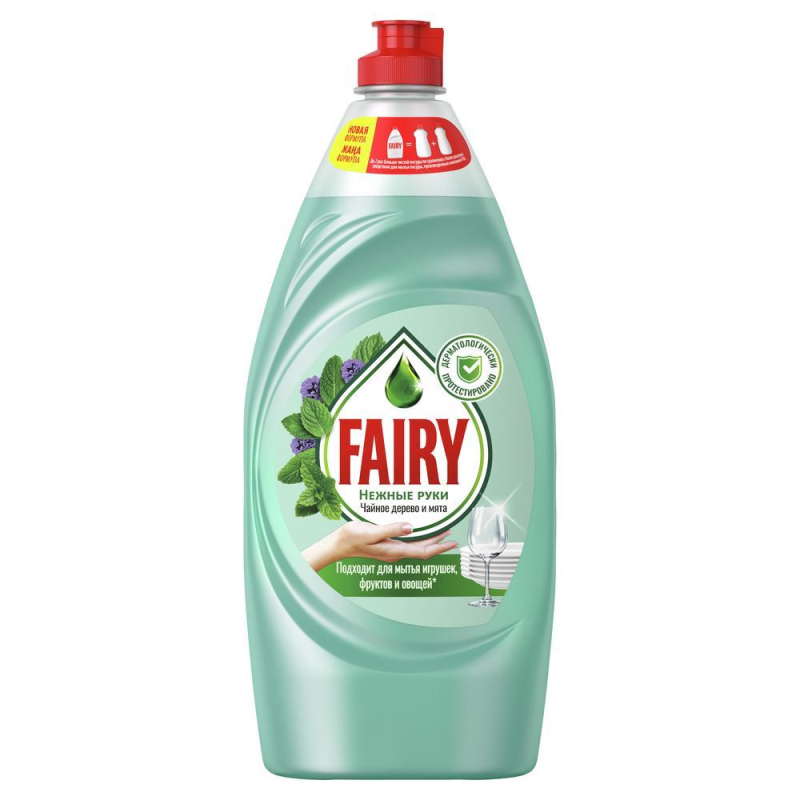 ?Средство для мытья посуды Fairy ??"??Нежные руки??.?? Чайное дерево и мята??"?? ??900?? мл??.??Назначение: л??инейка Fairy ??"??Нежные руки??"?? ??разработана совместно с? ?дерматологами для сохранения нежности кожи ??в??аших рук. Концентрированная формула Fairy быстро расщепляет жир и? ?обеспечивает идеальную чистоту посуды, в? ?тоже время не? ?провоцируя сухость кожи ??в??аших рук. Активные компоненты формулы настолько эффективны, что запросто растворяют жир даже в? ?холодной воде. ??Способ применения: для мытья нанесите небольшое количество ??Fairy?? на губку??.?? Добавляйте средство по мере необходимости в соответствии с количеством посуды, типом и степенью загрязнения.??Меры предосторожности: хранить вдали от? ?детей. Не? ?допускать попадания в? ?глаза. В? ?случае попадания в? ?глаза тщательно промойте водой.??Состав: ??5-15% ??а??нионные ПАВ,