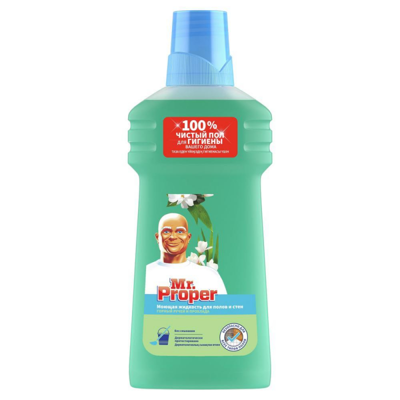 Средство для мытья пола Mr. Proper Горный ручей и прохлада 500 мл Назначение: Универсальное моющее средство Mr. Proper идеально подходит для очищения практически любых твердых поверхностей в доме. Его можно использовать для мытья кухонных раковин, удаления жира с плиты и даже для пола. Подробные инструкции по применению указаны на упаковке. После очищения поверхностей, соприкасающихся с пищевыми продуктами, необходимо промыть их водой. - Удаляет до 100 % грязи, жира и въевшихся пятен. - Универсальное моющее средство Mr. Proper - это решение для всего дома. - Эффективное очищение практически любых поверхностей. - Придает свежесть и невероятный блеск. - Очищает даже в холодной воде, позволяя экономить электроэнергию. - Выпускается с различными ароматами. Способ применения: Растворить 60 мл средства (2 колпачка) в 5 л воды. Не нужно смывать и вытирать насухо. Меры предосторожности: После применения вымыть руки. При попадании в глаза немедленно промыть их водой. Состав:
