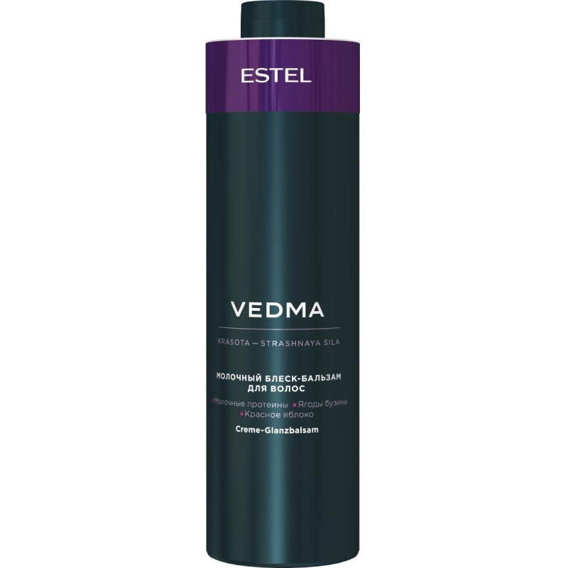 Бальзам Estel Vedma для блеска волос молочный укрепляет структуру, повышает прочность каждого волоса, наполняет сиянием по всей длине. Неудивительно, ведь в составе блеск-бальзама, помимо ценных молочных протеинов, есть ягоды бузины и красное яблоко, богатые витаминами и AHA-кислотами. Состав: aqua, cetearyl alcohol, behentrimonium chloride, behenamidopropyl dimethylamine, phenoxyethanol, methylparaben, ethylparaben, propylparaben, pyrus malus (apple) fruit extract, propylene glycol, parfum, benzyl salicylate, lactic acid, hydrolyzed milk protein, guar hydroxypropyltrimonium chloride, sambucus nigra (elder) flower extract, glycine soja (soybean) oil. Способ применения: нанесите на чистые влажные волосы, оставьте на 2-3 минуты, смойте. Объем: 1000 мл.