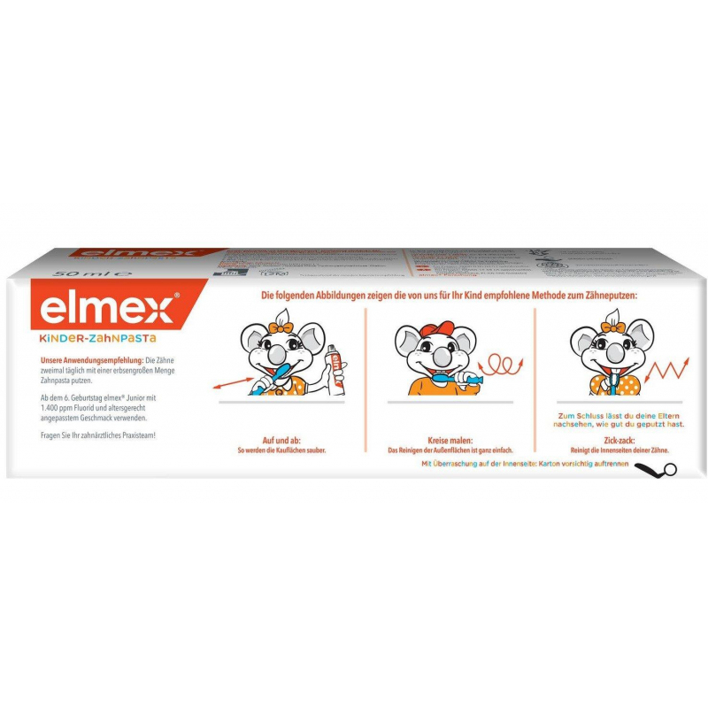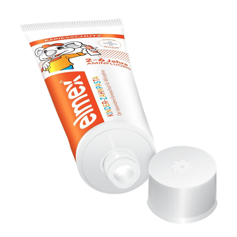 Детская зубная паста для детей с 2 до 6 лет разработана для ежедневного ухода и защиты мягкой, не полностью сформировавшейся эмали молочных зубов. Обладает приятным, мягким, но не сладким вкусом, что не провоцирует ребенка к проглатыванию зубной пасты. Содержание аминофторида адаптировано к потребностям организма ребенка в возрасте до 6 лет. Состав: Aqua, Sorbitol, Hydrated Silica, Hydroxyethylcellulose, CI 77891, Cocamidopropyl Betaine, Olaflur, Aroma, Saccharin, Limonene.