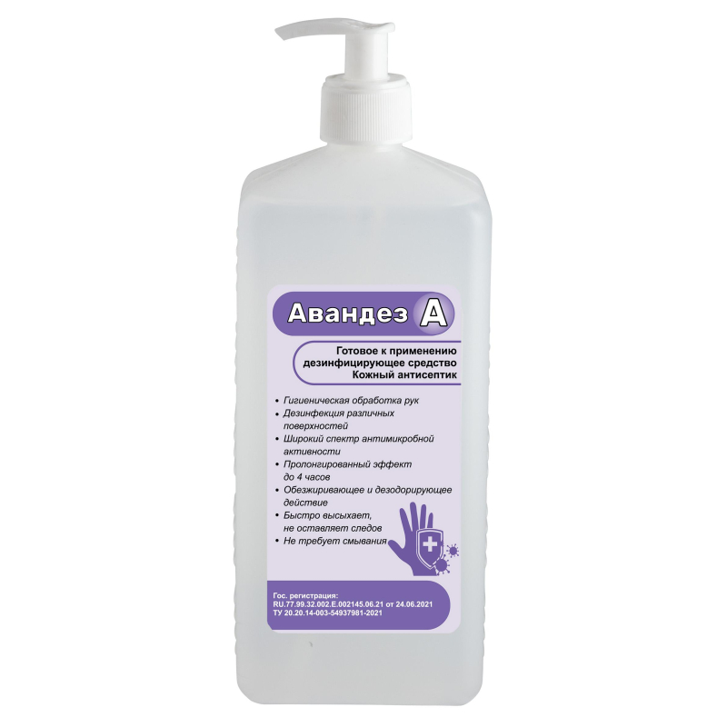 ?Дезинфицирующее средство "Авандез-А" - готовая к применению прозрачная бесцветная жидкость, обладающая бактерицидным, вирулицидным, туберкулоцидным и фунгицидным действием, обеспечивающая быстрый и продолжительный антисептический эффект. Применяется для дезинфекции небольших по площади и/или труднодоступных поверхностей, для гигиенической обработки рук и обработки рук хирургов, обработки кожи инъекционного и операционного поля, локтевых сгибов доноров, санитаризации кожных покровов и обеззараживания СИЗ. Содержит спирт изопропиловый - 70,0%, 2-феноксиэтанол - 0,2%, алкилдиметилбензиламмоний хлорид - 0,05%, а также функциональные компоненты, увлажняющие и ухаживающие за кожей компоненты, что полностью отвечает требованиям СанПин и ГОСТ.?