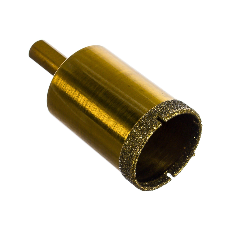 Коронка по керамограниту алмазная Практика Эксперт 35 мм (035-097)Коронка алмазная (сверло трубчатое) подходит для сверления керамического гранита, стекла, облицовочной плитки. Подходит для сверления бетона и кирпича. Для безударного сверления! Для работы лучше всего использовать аккумуляторную дрель, сочетающую высокий крутящий момент и невысокие обороты. Использовать охлаждение водой. Рекомендуемая частота оборотов указана на упаковке от 200 до 1000 об/мин в зависимости от диаметра. Обязательно охлаждать водой. Диаметр 35 мм.