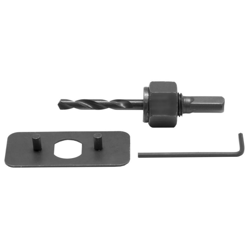 Адаптер для коронок по дереву Практика (918-740)Адаптер Практика 918-740 держатель для HCS коронок 32-150 мм используется для установки коронки по дереву в дрель, имеет центрирующее направляющее сверло 6 мм. При работе коронками большого диаметра необходимо установить ведущую пластину (в комплекте), чтобы не повредить посадочное отверстие при передаче высокого крутящего момента.
