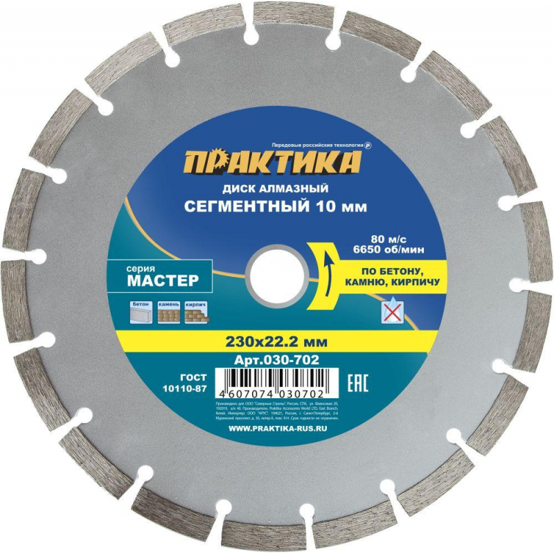Диск алмазный сегментный ПРАКТИКА Мастер 230 х 22 мм коробка 030-702