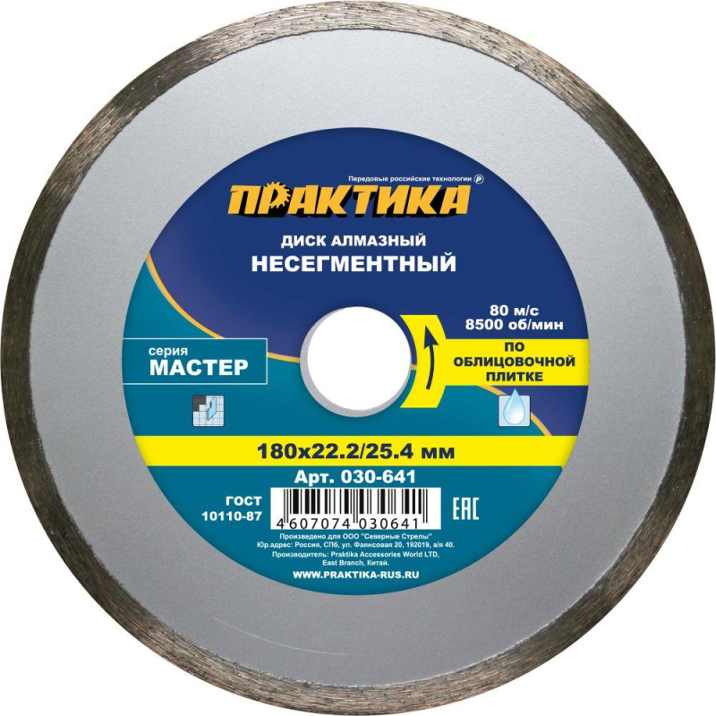 Алмазные диски для пиления керамической и мраморной облицовочной плитки. Очень высокая скорость резания. Для ручного электроинструмента и станков. Работа с охлаждением водой. Не для керамогранита. Долговечность алмазного диска зачастую обратно пропорциональна скорости пиления. Для продвинутых любителей, постоянно использующих электроинструменты, ограниченно подходит для профессионального применения. Посадка для плиткореза 25,4мм. В комплекте переходное кольцо 22,2 мм для установки на УШМ.
