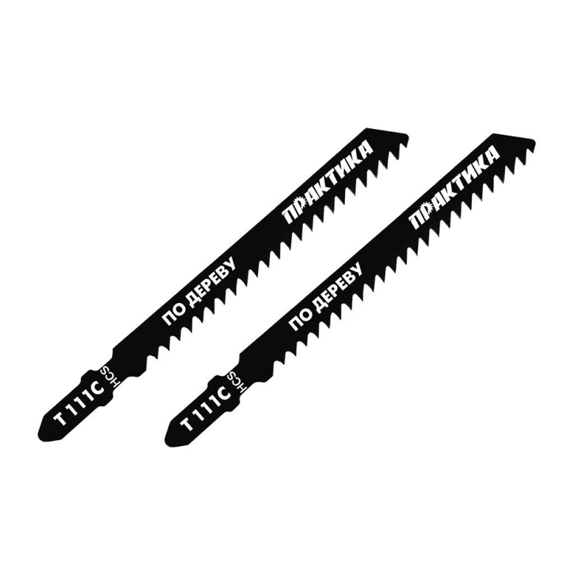 Пилки для лобзика по дереву, ДСП Практика 034-465 тип T111C 100x75 мм, грубый рез, HCS 2 шт. Пилки для лобзика предназначены для пиления мягкой и средней твердости древесины. Изготовлены из высокоуглеродистой стали. Фрезерованные, разведенные зубья обеспечивают эффективный выброс опилок и быстрое, производительное пиление. Шаг зубьев 3 мм.