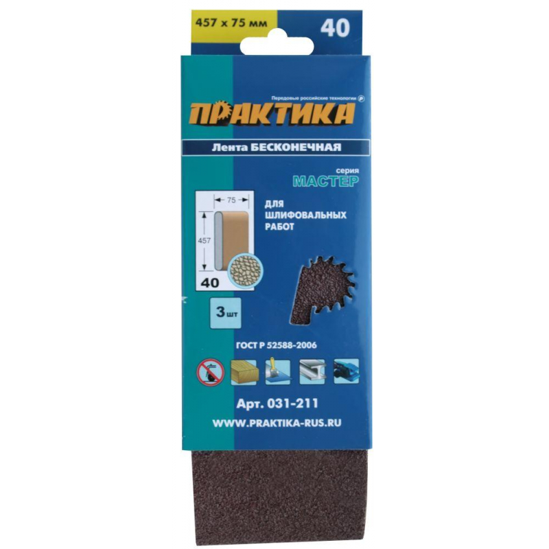Лента шлифовальная ПРАКТИКА 75 х 457 мм P40 (3шт) картонный подвес 031-211