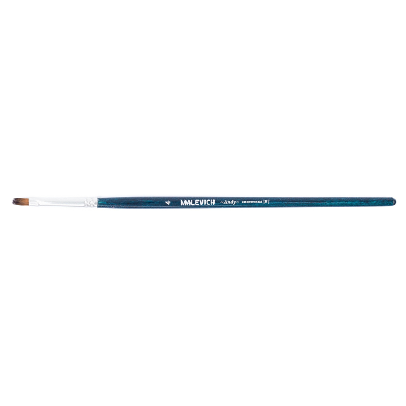 Кисть из синтетики Andy, плоскоовальная №4. Кисть из синтетики серии Andy - это мягкая универсальная синтетика, которая подходит практически для любых видов красок. Ей удобно работать с гуашью, акварелью, акрилом, темперой. Маслом можно работать в лессировочной технике с разбавителем. Синтетика рыжего цвета с темным кончиком, ручка покрыта синим лаком, ворс закреплен алюминиевой втулкой с двойной обжимкой. Ручка кисти короткая - 14 см. Длина ворса (выставка) короткая. Номер кисти соответствует диаметру в мм.
