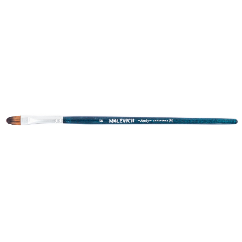 Кисть из синтетики Andy, плоскоовальная №8. Кисть из синтетики серии Andy - это мягкая универсальная синтетика, которая подходит практически для любых видов красок. Ей удобно работать с гуашью, акварелью, акрилом, темперой. Маслом можно работать в лессировочной технике с разбавителем. Синтетика рыжего цвета с темным кончиком, ручка покрыта синим лаком, ворс закреплен алюминиевой втулкой с двойной обжимкой. Ручка кисти короткая - 14 см. Длина ворса (выставка) короткая. Номер кисти соответствует диаметру в мм.