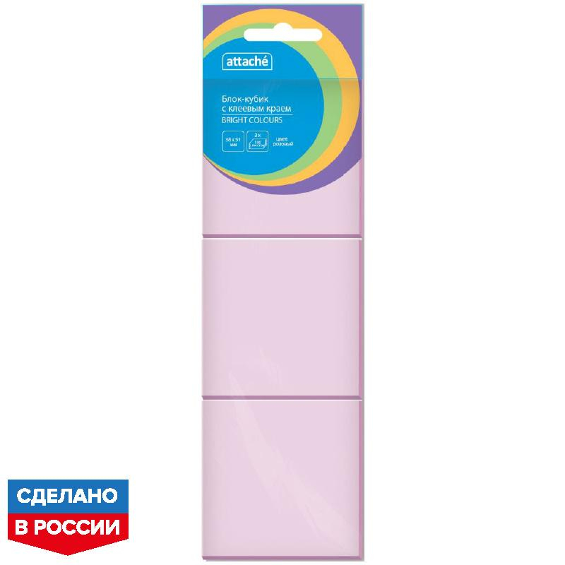 Стикеры Attache в формате 38x51 мм ,розового цвета по 100 листов в каждом блоке (всего 300 листов). Хорошо подойдут для сотрудников творческих профессий и руководителей: рекомендуются для использования в процессе совещаний, обучения, мозговых штурмов. Тон стикеров - пастельный. Плотность бумаги составляет 60 г/кв.м, клейкий слой - 16 Н/м. В наборе 3 блока по 100 листов, в блистере. Длина клейкой стороны 51 мм. После удаления бумаги на поверхности не остается следов клеевого состава, лист можно крепить повторно. Особых условий хранения не требует, сертификации не подлежит, срок годности не ограничен.