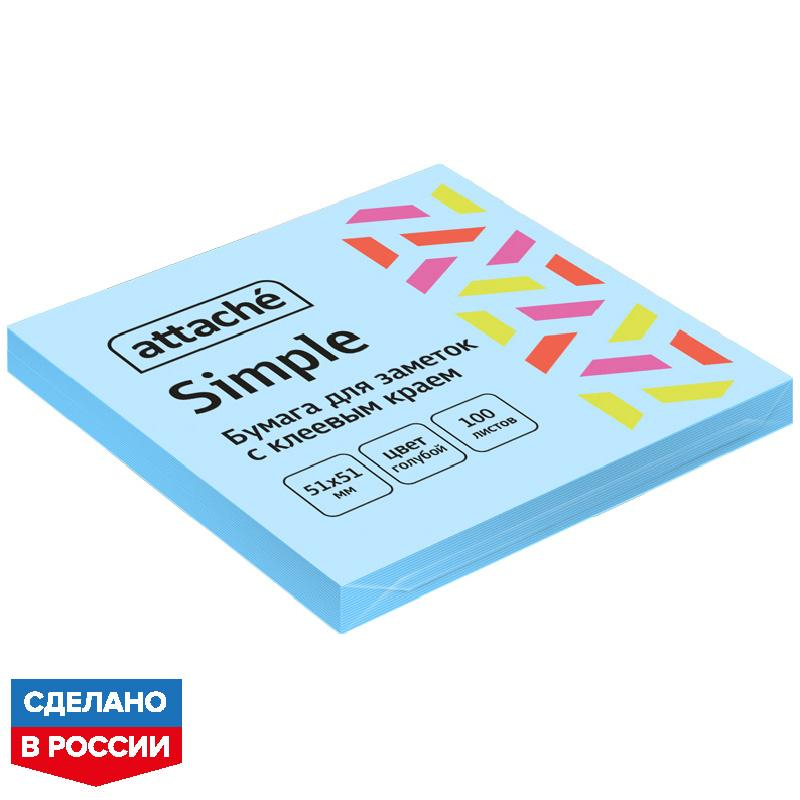 Стикеры Attache в формате 51x51 мм, голубого цвета, состоят из 100 листов. Хорошо подойдут для сотрудников творческих профессий и руководителей: рекомендуется для использования в процессе совещаний, обучения, мозговых штурмов. Тон стикеров - пастельный. Плотность бумаги составляет 60 г/кв.м, клейкий слой - 22 Н/м. После удаления бумаги на поверхности не остается следов клеевого состава, лист можно крепить повторно. Длина клейкой стороны 51 мм. Особых условий хранения не требует, сертификации не подлежит, срок годности не ограничен.