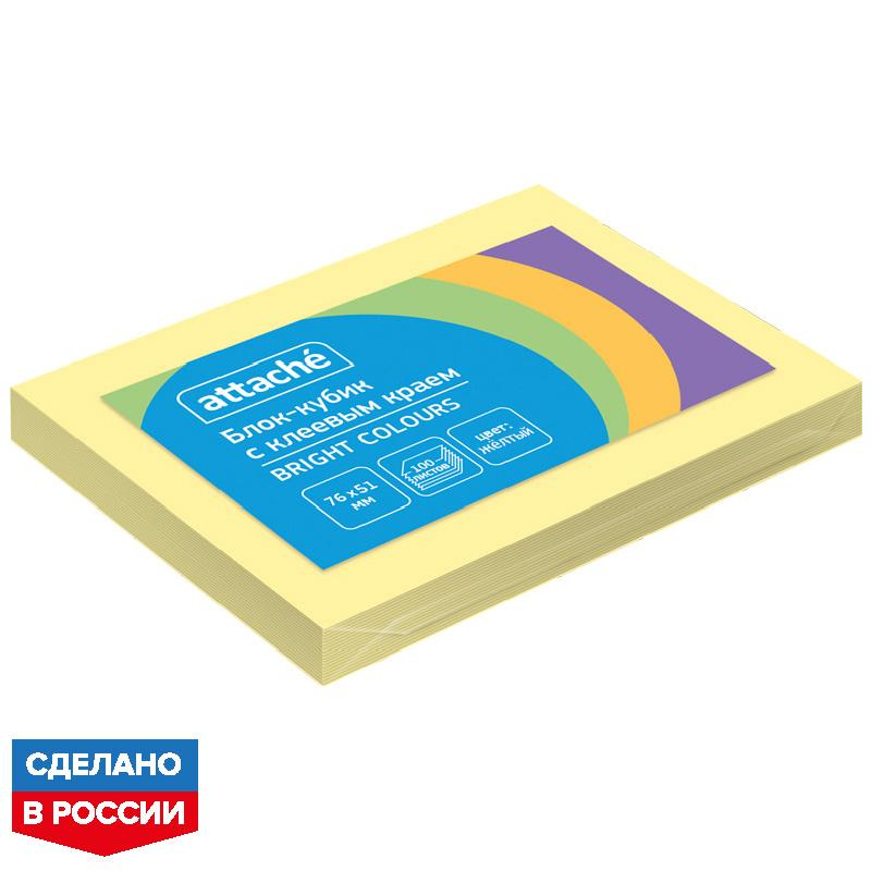 Стикеры Attache в формате 76x51 мм, желтого цвета, состоят из 100 листов. Хорошо подойдут для сотрудников творческих профессий и руководителей: рекомендуется для использования в процессе совещаний, обучения, мозговых штурмов. Тон стикеров - пастельный. Плотность бумаги составляет 60 г/кв.м, клейкий слой - 22 Н/м. После удаления стикера на поверхности не остается следов клеевого состава, лист можно крепить повторно. Длина клейкой стороны составляет 51 мм. Особых условий хранения не требует, сертификации не подлежит, срок годности не ограничен.
