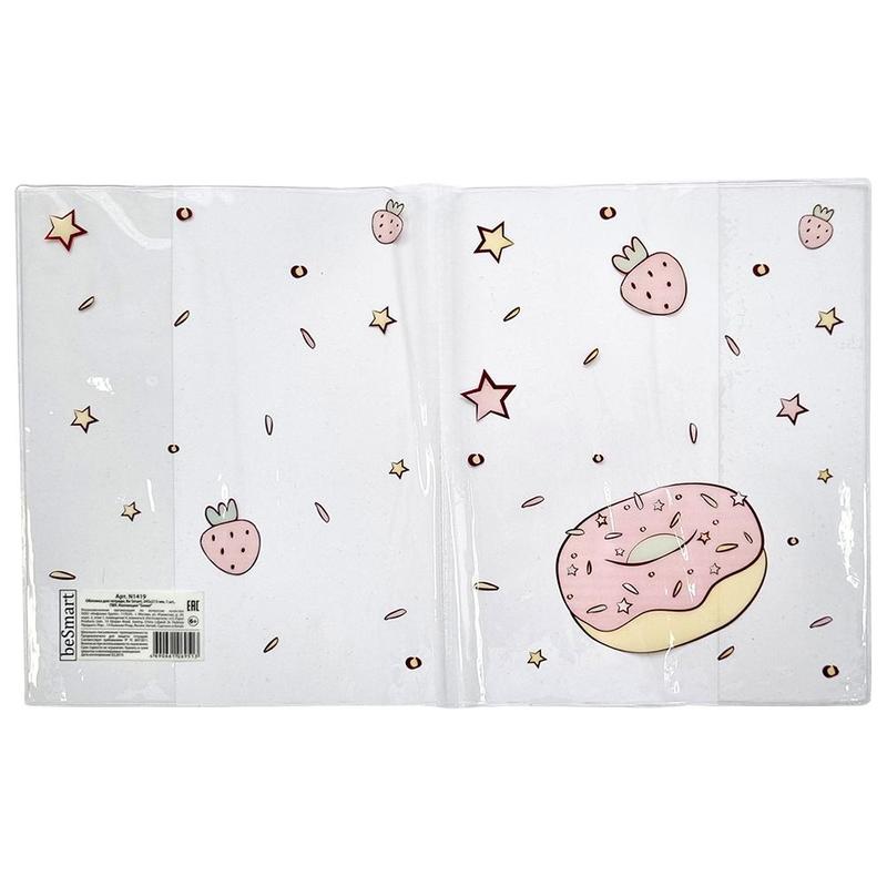 Коллекция Sweet от Be Smart точно не прибавит лишних килограмм, хоть она и очень сладкая! Обложка 213x345 мм не только украсит даже самую обычную тетрадь или дневник и позволит выделиться, но и обязательно предохранит их от загрязнений или влаги и продлит срок службы! Обложка изготовлена из прозрачного матового полихлорвинила плотностью 150 мкм с цветной печатью и скругленными уголками, которые не повредят подкладку рюкзака или сумки. Клапаны для вставки тетради или дневника - фиксированные. Подойдет для стандартных тетрадей А5 формата.